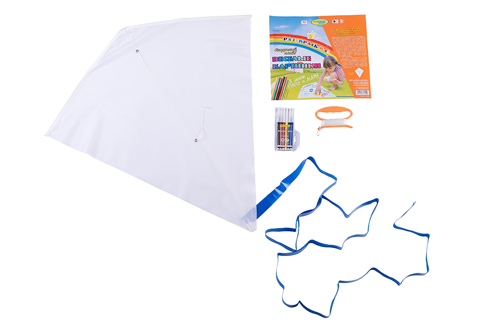 Проявите фантазию и оформите свой воздушный змей под себя. Увлекательное занятие, которым можно заняться с ребенком или самостоятельно. В комплекте представлены фломастеры. Размер воздушного змея 75х71, леер 30м.